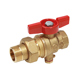 Küresel vana, dişi-erkek rakor bağlantılı, M10x1 mm dişi vidalı prob tutuculu, Ø6 mm prob için. Krom kaplamalı pirinç. Tam port. Kırmızı renk T-kulp (su kullanımı).