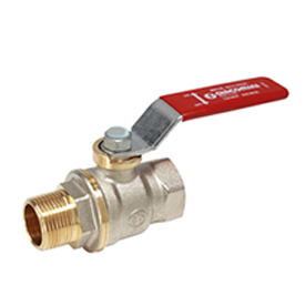 DADO küresel vana, dişi-erkek bağlantılı. Nikel kaplamalı pirinç. Tam port. Kırmızı renk kol (su kullanımı).
